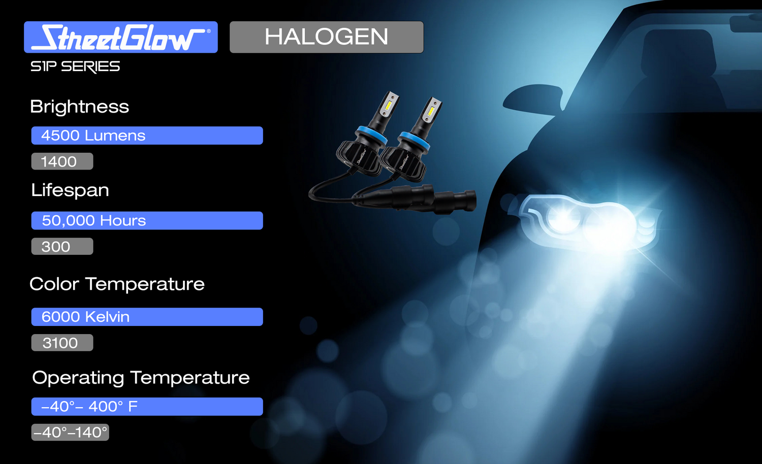 Upgrade your vehicle lighting with StreetGlow S1P LED Headlight Bulbs, engineered for maximum brightness, visibility, and safety. Featuring award winning Seoul ® Y19 CSP LED technology, mounted on aviation grade 6063 aluminum for the greatest heat dissipation available, coupled with our patented Beam Selector Dial, these plug-and-play bulbs deliver a fresh white light that mimics daylight, dramatically improving night driving confidence. Built with highest-grade materials and a long-lasting design, the S1P LEDs are the ultimate replacement for standard halogen headlights