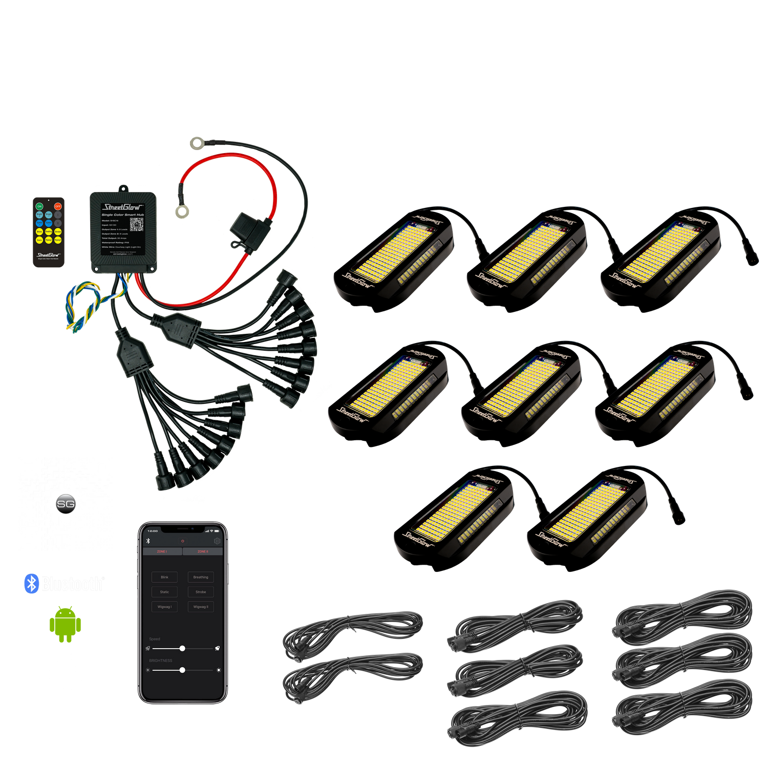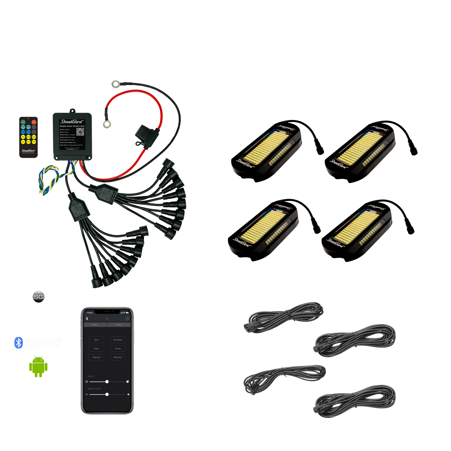 Upgrade your off-road rig with StreetGlow LED Rock Light Kits. Designed for trucks, Jeeps, ATVs, and UTVs, these smart pod rock lights deliver brilliant underbody illumination that’s fully waterproof and built to withstand the harshest trails: each Rock Light (Smart Pod) is waterproof, durable, and designed to handle mud, rocks, and vibration. The included Smart Hub allows you to control lighting modes, colors, and synchronization across multiple pods via remote or smartphone app. Available in 4-, 8-, or 12-Pod Kits, these plug-and-play setups make installation quick and easy while giving your ride a head-turning glow.